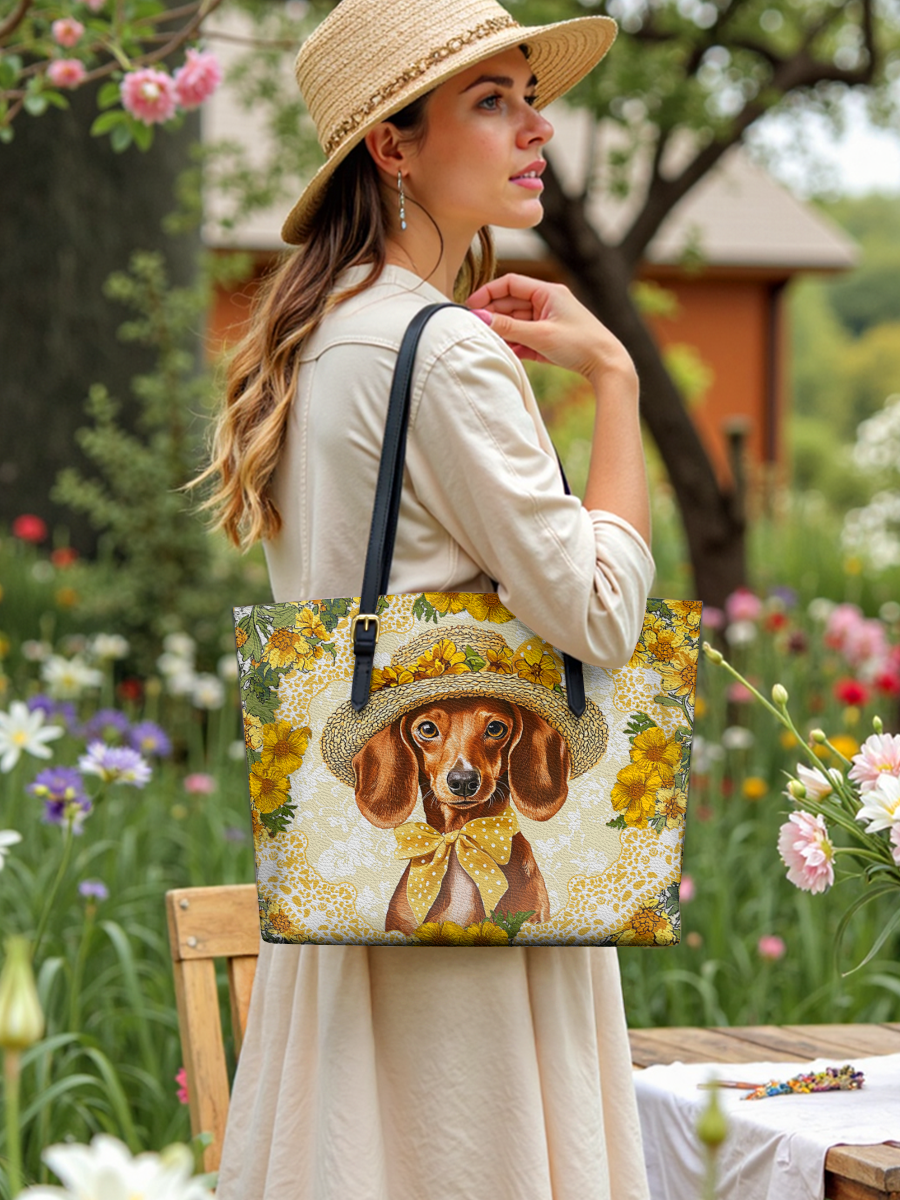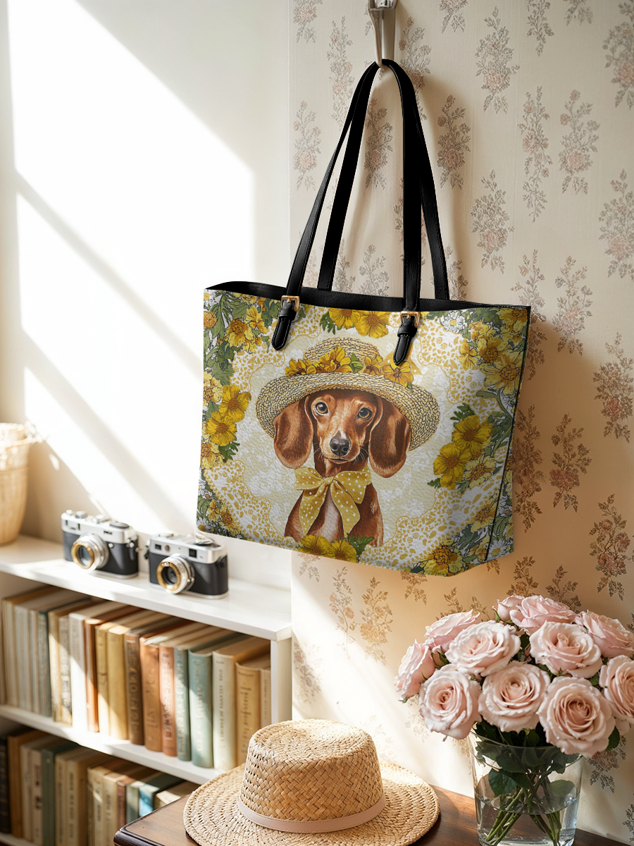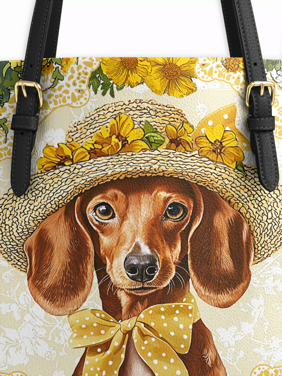 DachyCharm Sunshine Doxie Leather Tote Bag