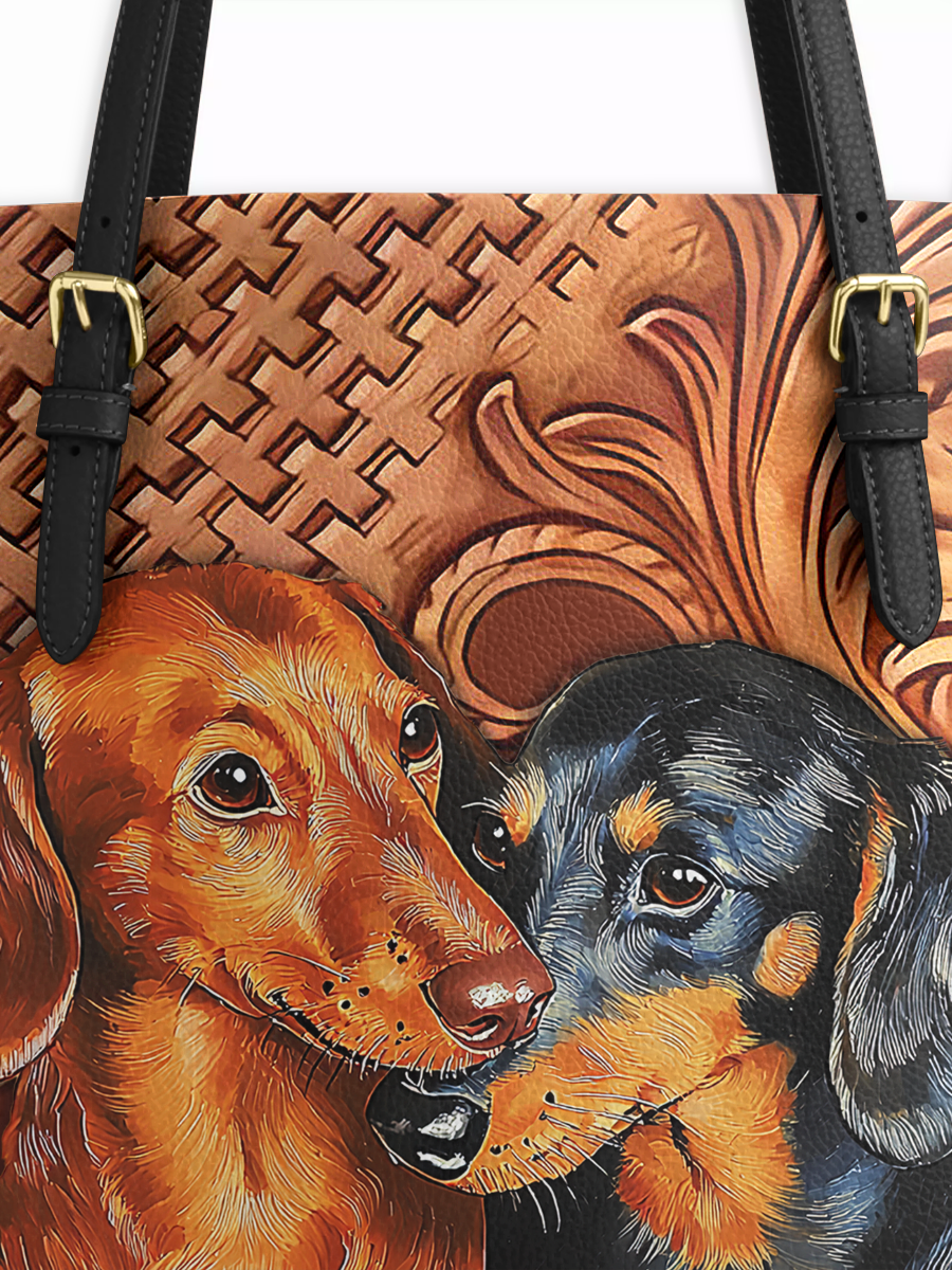 Charming, spirited, and unmistakably yours. The DachyCharm Tote Bag blends timeless elegance with playful dachshund artistry, capturing hearts with every glance. Crafted from premium leather and designed for everyday ease, it’s more than a bag—it’s a joyful expression of your unique bond.