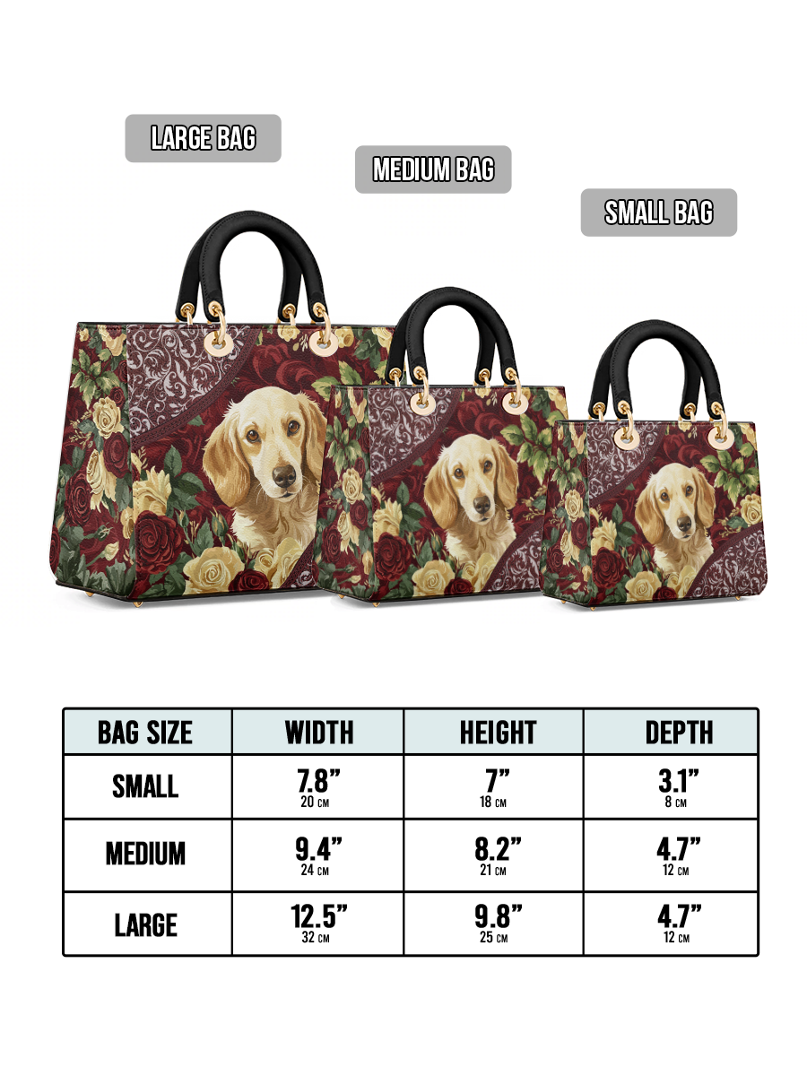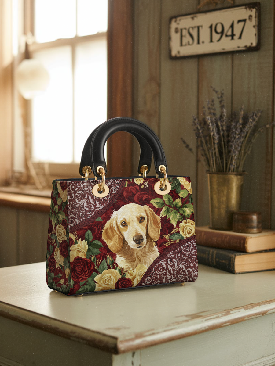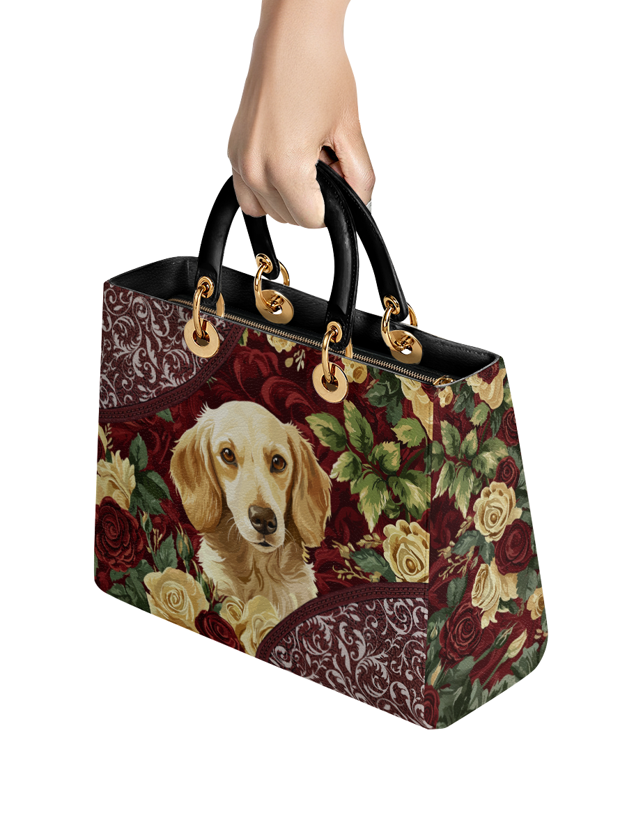 The Lady Leather Bag by DachyCharm brings timeless elegance to everyday moments. With its structured silhouette, sturdy top handles, and charming details, it’s the perfect blend of grace and personality — made for dachshund lovers who adore a touch of sophistication.