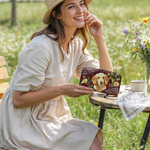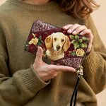 Refined and heartfelt, the Velvet Pup wallet cradles elegance in every curve. A gentle dachshund gazes sweetly from within layers of blooming roses and scrolling damask textures, evoking the aura of old-world grace.