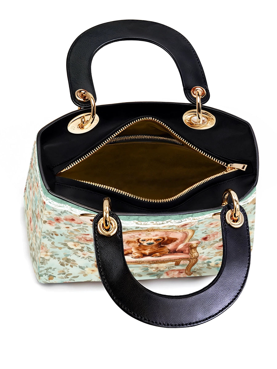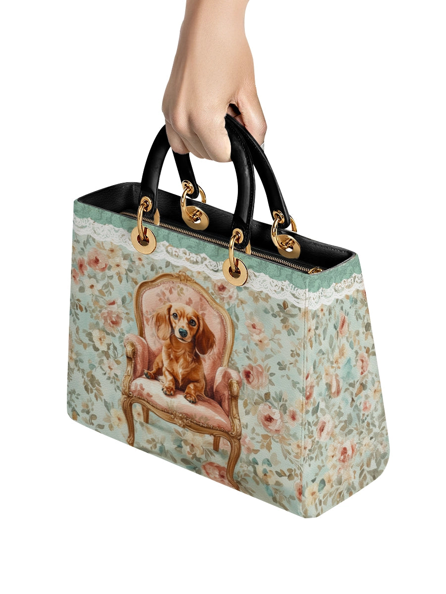 The Lady Leather Bag by DachyCharm brings timeless elegance to everyday moments. With its structured silhouette, sturdy top handles, and charming details, it’s the perfect blend of grace and personality — made for dachshund lovers who adore a touch of sophistication.