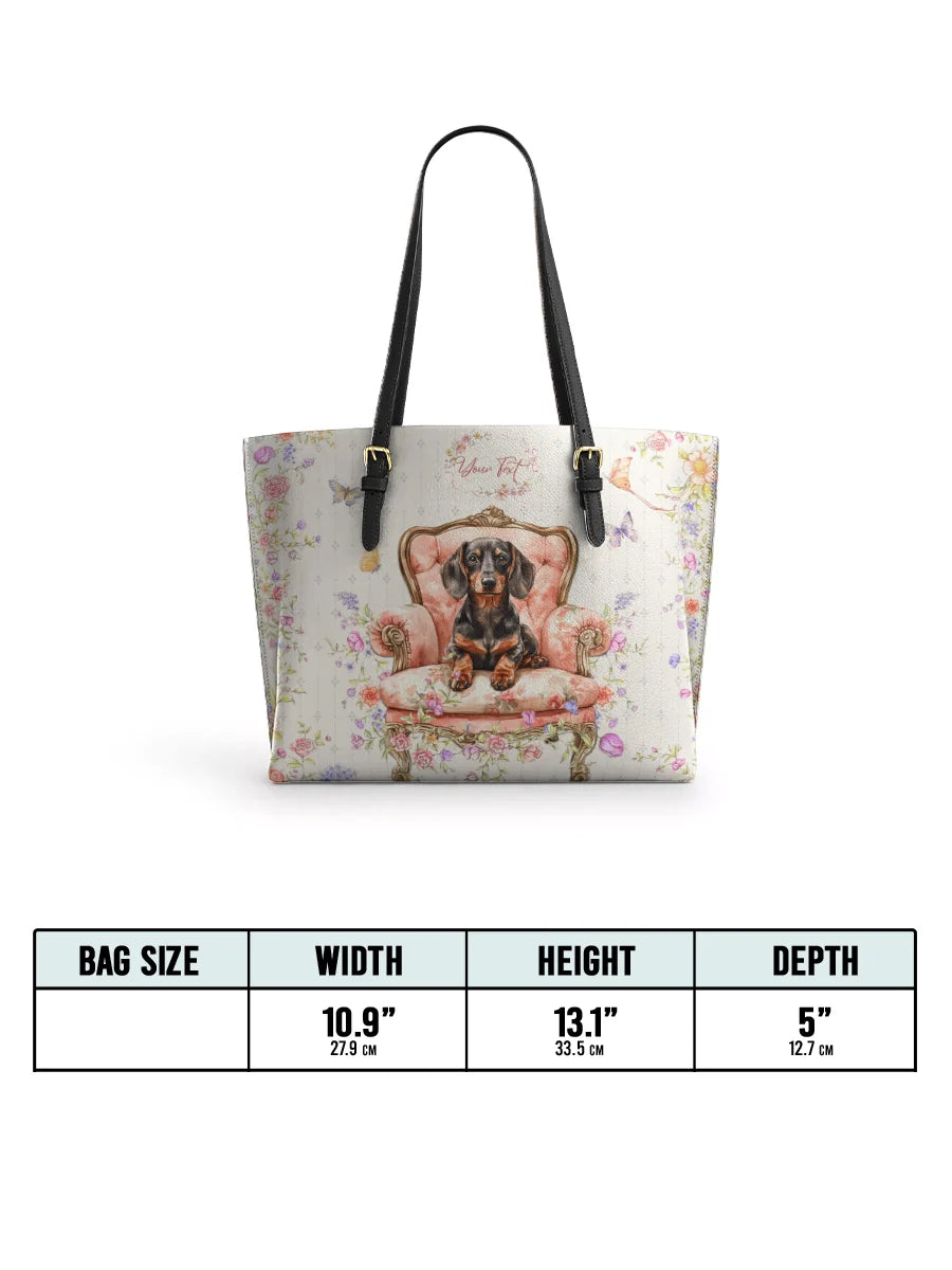 Charming, spirited, and unmistakably yours. The DachyCharm Tote Bag blends timeless elegance with playful dachshund artistry, capturing hearts with every glance. Crafted from premium leather and designed for everyday ease, it’s more than a bag—it’s a joyful expression of your unique bond.