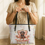 DachyCharm Royal Bloom Personalized Leather Tote Bag