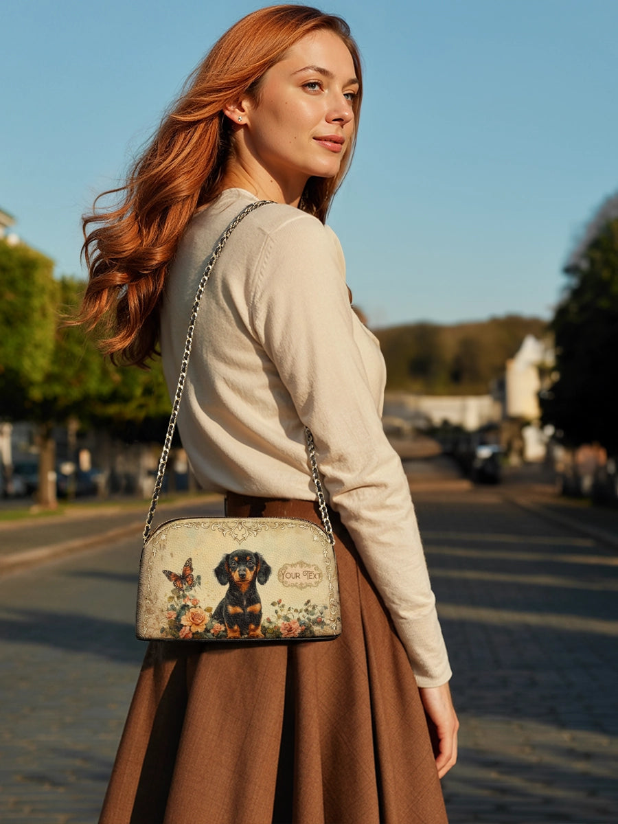 Thoughtfully crafted with charm and character, the DachyCharm Crossbody Bag blends playful spirit with timeless design. Its petite silhouette, sleek chain strap, and whimsical dachshund artwork turn everyday outings into moments of joy and self-expression
