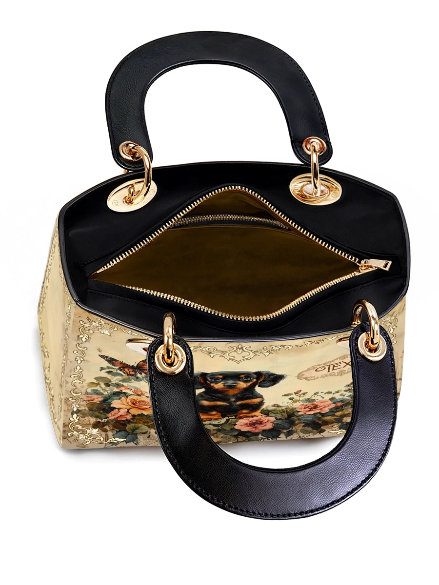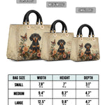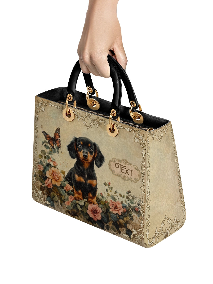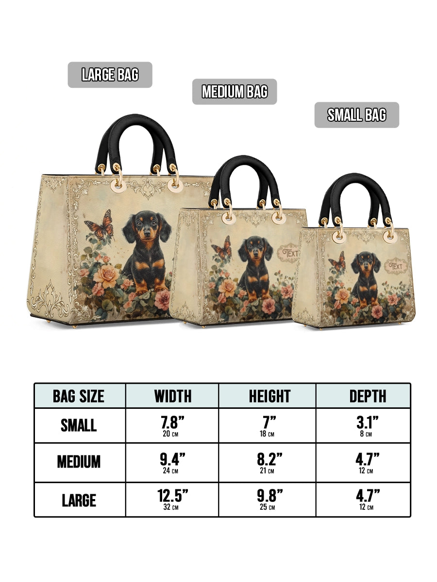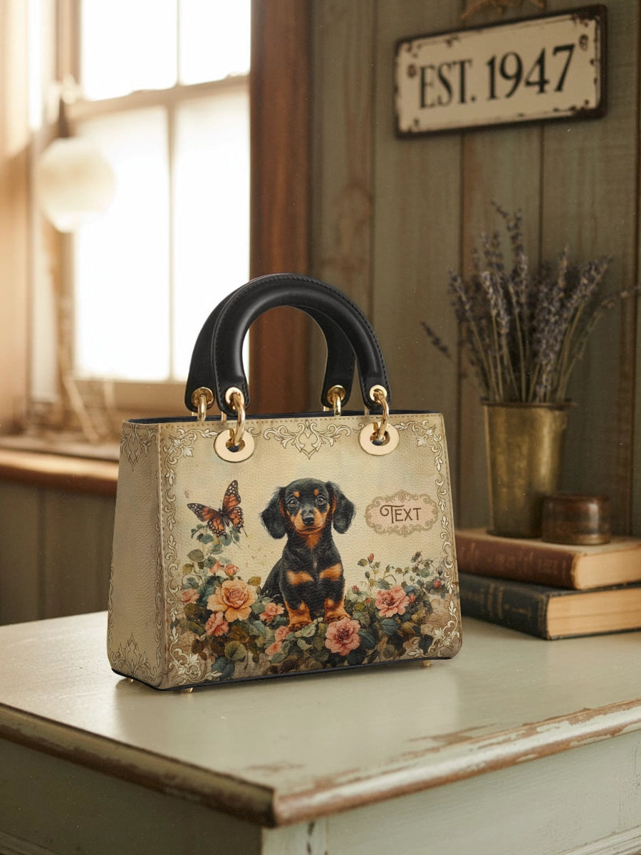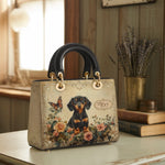 The Lady Leather Bag by DachyCharm brings timeless elegance to everyday moments. With its structured silhouette, sturdy top handles, and charming details, it’s the perfect blend of grace and personality — made for dachshund lovers who adore a touch of sophistication.