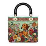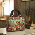 The Lady Leather Bag by DachyCharm brings timeless elegance to everyday moments. With its structured silhouette, sturdy top handles, and charming details, it’s the perfect blend of grace and personality — made for dachshund lovers who adore a touch of sophistication.