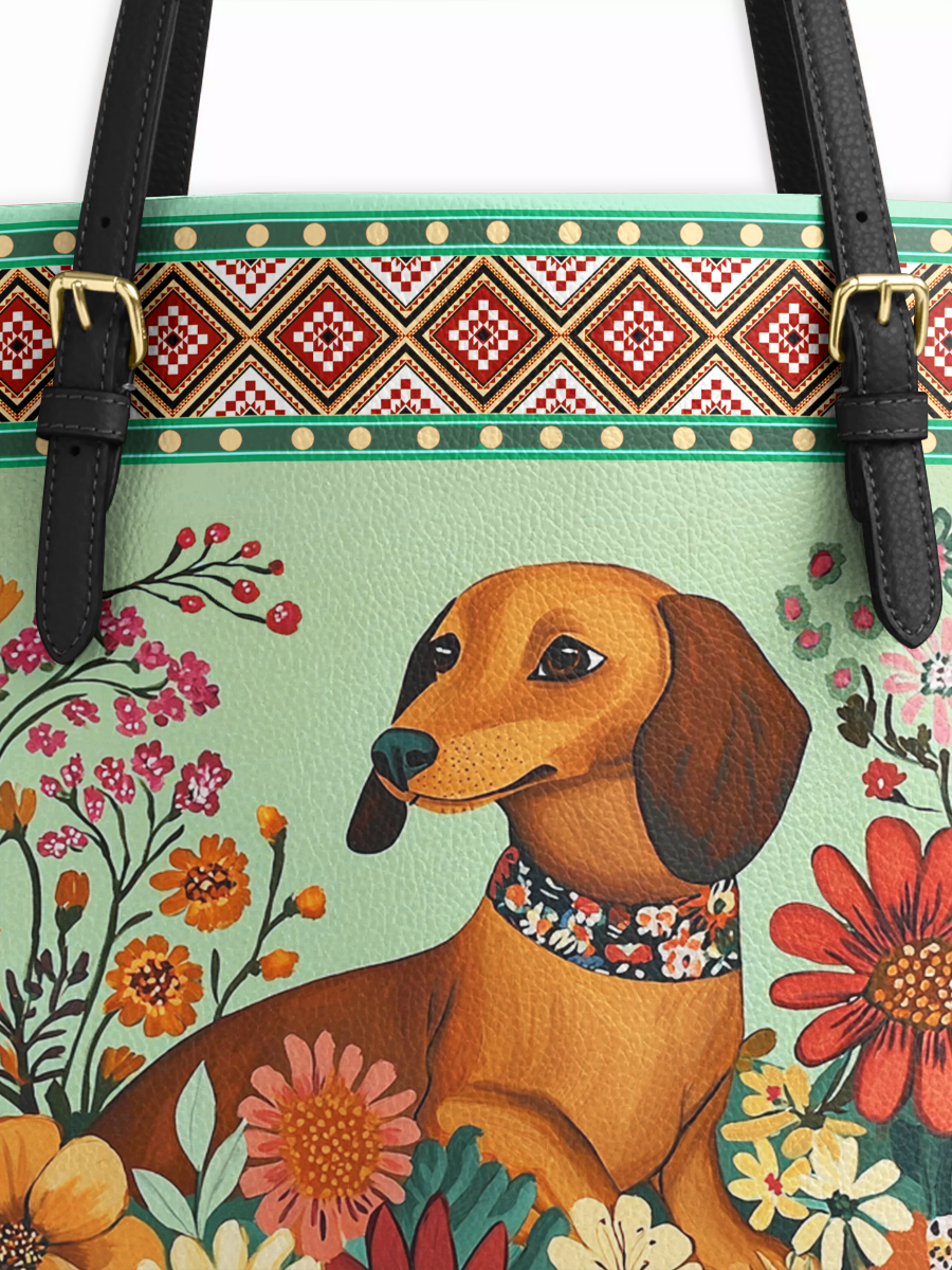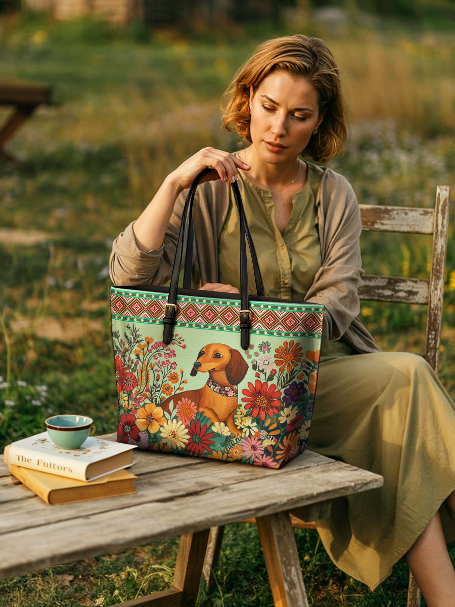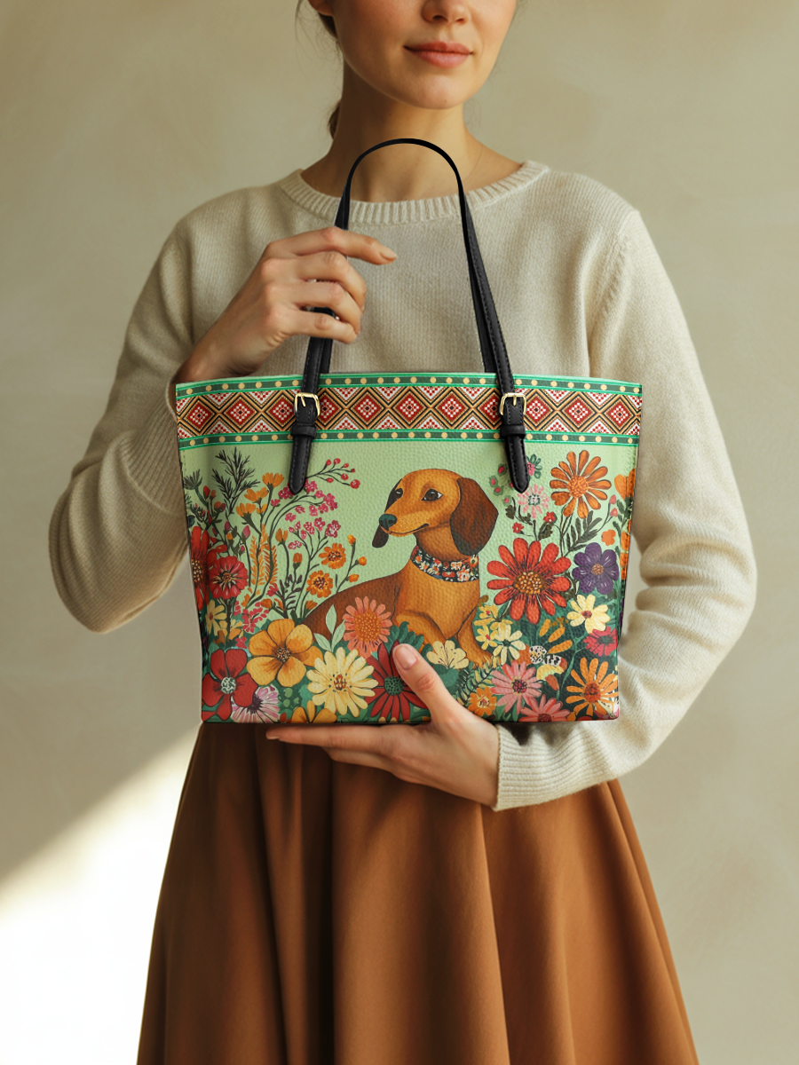 DachyCharm Wildflower Weenie Leather Tote Bag